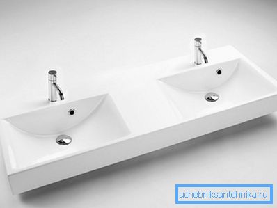 На второ място, ако има две измивания, се оказва, че трябва да уредите двойна мивка за мивката. Независимо дали да направите такъв дизайн на неопитен човек, е доста трудно, което означава, че трябва да купите този елемент.