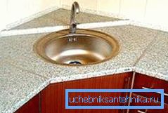 - отгоре, В този случай купата се поставя върху плота, лежи върху нея със страни или върху краищата на стените на бордюра. Този метод се отличава с обикновена инструкция за изпълнение.