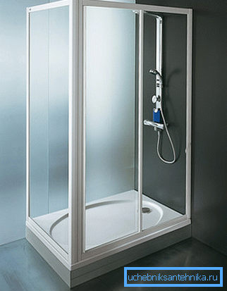 Забележка. В повечето случаи душ-огради, които са съседни на една или две стени, се наричат кабини. Самостоятелните структури, които имат не само стени, но и покрив, се наричат кутии.