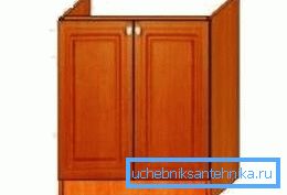Облицовка под мивката 60х80 също представлява тристранна конструкция, оборудвана с две странични страни и врати от предната страна. Страничните планки са свързани помежду си чрез три напречни пръта, два от които са монтирани отгоре и отдолу на предната част. Третият е монтиран срещу нас, в средата на конструкцията отстрани на стената.