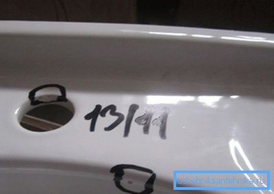 - След това слагаме мивката на стената на избраната височина (тук ще се нуждаем от помощта на асистент) и маркираме фиксиращите точки.