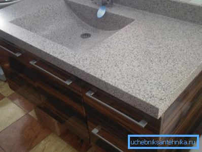 Моделите от изкуствен камък също са чудесни за използване в банята, но те са скъпи и следователно са в по-малко търсене. Те се различават по силата, трайността, разнообразието от форми и цветове. Те изглеждат добре в модерния интериор със скъпи ремонти, могат да имитират естествен камък, керамика и други материали.