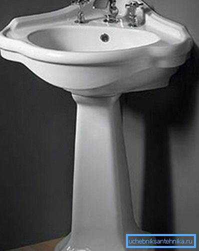 Всъщност това е обикновен керамичен мивка без специални допълнителни функции. Основната разлика в това устройство е "крака" - това е един вид кухи пиедестал, който е поставен под купата.