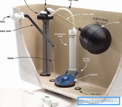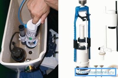 - При закупуване на вътрешен механизъм на резервоара е необходимо веднага да изберете качествен продукт, в който няма да има елементи от метал или тънка пластмаса. От това ще зависи от живота на цялата структура и лекотата на поддръжката. Трябва да се отбележи, че по-надеждни системи се считат за неръждаема стомана, въпреки че тяхната цена е доста висока.