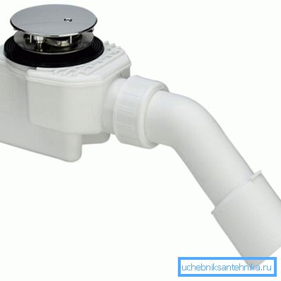 | тръбен | Това е извита клонка, която се състои от няколко части. Предимството на този дизайн е надежден воден капан, но той изисква много пространство между душа и пода, така че по време на монтажа може да е необходимо да повдигнете палета. |