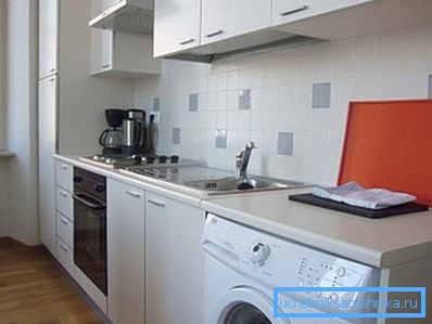 - В кухнята. Подходящ е, ако зоната на банята е твърде малка, за да може да се постави пералня.