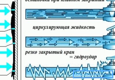 - Най-опасното моментно увеличение на налягането в мрежата или хидравличен шок, Това се случва например, когато водопроводчикът рязко затваря ръцете си с клапана на помпената станция. Той също така възниква, когато излишъкът на въздух навлиза в тръбите.