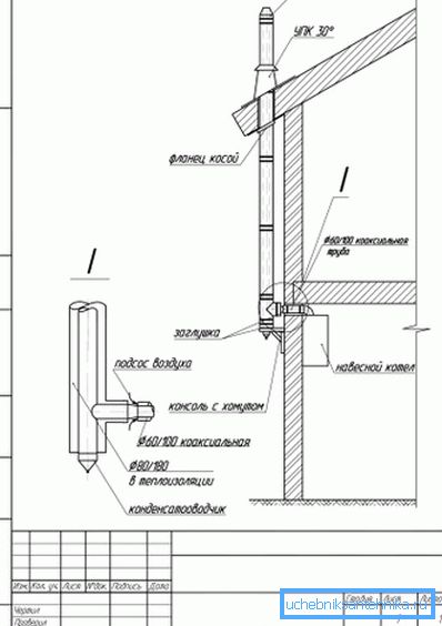 - Инструкцията за монтаж на котли с отворена горивна камера е различна. В този случай е необходимо да се изгради пълен комин, който да преминава през покрива.