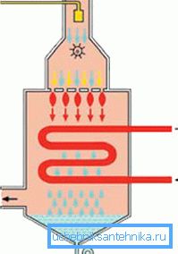 - Принципът на работа тук е фундаментално различен от традиционните котли, въпреки че газовата горелка все още затопля топлообменника, но вторичната топлина не се изпуска на улицата, но се използва и за отопление! Тук киселинен кондензат преминава през специален тръбопровод през филтрите, който пада по време на процеса на образуване. Този момент на запазване на вторичната топлина позволява да се постигне такъв висок, равен, на пръв поглед невъзможен коефициент.