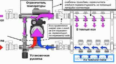 В случай на топло подове, особено важно е охладителят да се съхранява при температура не по-висока от определена температура. Ако например потокът на охлаждащата течност се регулира с помощта на конвенционални термостати, тогава, когато системата е стартирана, ситуацията може да възникне, когато горещата вода навлезе в тръбите. В резултат на това ще бъде просто неудобно да ходите известно време на пода и част от тръбите може да бъде повредена.
