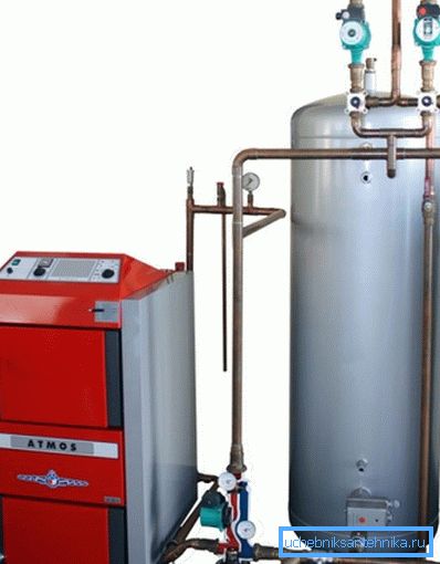- Предотвратява възможността за варене на котела, тъй като поглъща прегрята вода и го смесва с охладен, Тази функция е много важна, тъй като котлите на твърдо гориво не могат внезапно да спрат процеса на отопление, както при газовите и електрически уреди.