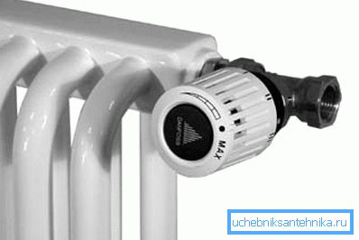 - Вместо газ, често се използва термостатична глава. Добре е, че е в състояние автоматично да регулира своята честотна лента, в зависимост от степента на загряване на въздуха в помещението.