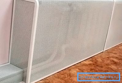 - Вградени декоративни решетки се използват в случай, че в стаята има фалшива стена и е необходимо да се украси конвекторът.