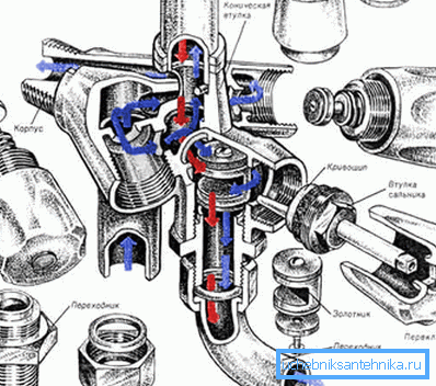 - Оборудване с отделни кранове, разположен на едно и също тяло - е традиционна конфигурация, която се прилага универсално повече от сто години.