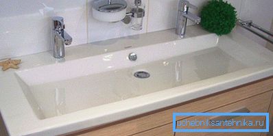 Обърнете внимание! Понякога има необичайна възможност за нашите места: мивка с два миксера. Това оборудване е оправдано само ако и двете смесители са свързани към топла и студена вода и позволяват на двама души да използват мивката едновременно. Ако един кран доставя топла вода, а вторият е безполезен дизайн.