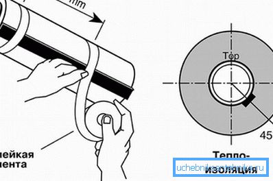 - В заключение, цялата тръба се увива възможно най-плътно с водопроводна лента върху изолацията, която преди е била инсталирана.
