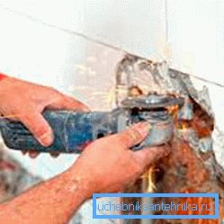 - Старите тръби са нарязани от българите и разглобени. Внимателно минете през стените в местата, където продуктите са закрепени. Всички крепежни елементи също са демонтирани така, че да не пречат на полагането на облицовъчната плочка или друг завършващ материал.