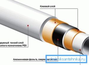 - Металопластичните аналози имат трипластова структура. В тях алуминиево фолио се намира между външния и вътрешния слой на полимера. Той предпазва материала от просмукване на кислород и намалява линейната му термична експанзия.