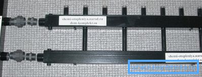 - Разпределите гребени на изход и връщане са направени точно същите, Единствената разлика е в подреждането на дюзите. Ако и в двата гребена тръбопроводите се издигат нагоре или надолу, тогава е по-добре да ги поставите в разредна последователност. Просто казано, изходите на горния гребен трябва да бъдат изместени наполовина от обхвата спрямо долната структура. Така че ще бъде по-удобно да се свържат тръбите.