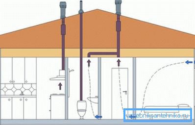 - В някои случаи вентилационното устройство в банята и тоалетната се комбинира и отделя отделно от кухнята, Смята се, че такава система е най-практична и надеждна.