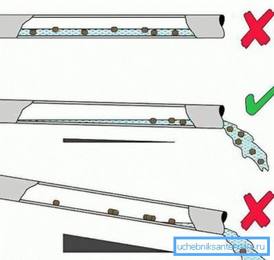 Вие сте изчислили мястото, където ще премине дренажът и дълбочината на полагането му. Но за да функционира правилно, тръбата трябва да лежи под наклона отгоре до страната на оттичане. Наклонът се изчислява по същия начин, както при повърхностния дренаж и канализацията с дължина 1-2 cm на 1 m линеен. За правилното изчисляване на наклона на цялата магистрала можете да направите някои изчисления: