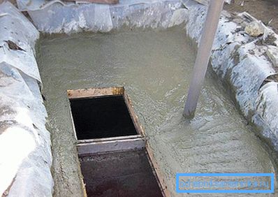 - Малък слой бетонов разтвор се излива в дъното на резервоарите, който не е предназначен за потупване на рециклираната вода, в която е подложена подсилващата се мрежа. След това се излива останалата част от бетоновия разтвор. В все още не замразената смес се поставят фитинги за стените по кръговия периметър на подготвената яма.