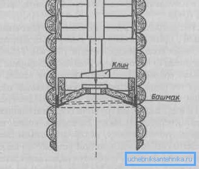 За да може рамката по-лесно да се спусне във вала, основата й трябва да се разшири, осигурявайки най-ниската част с режещ нож, наречен "обувка". Лесно е да го направите със собствените си ръце от стоманен ъгъл. Особено това устройство помага в случаите, когато дълбочината на източника достига 20 и повече метра.