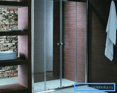 - Плъзгащи структури - най-често срещаните и прости, устройството им е познато на всички. Ако имате нужда от врата за душ в ниша от 100 см, тогава е подходяща двупластова версия, по-тесни отвори могат да бъдат направени и с единични листа. Единственото изискване - наличието на свободно пространство пред нишата, което трябва да бъде един и половина пъти по-голямо от крилото на вратата.