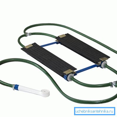 Обърнете внимание! За тези, които не могат да изградят стационарен душ, е намерено едно просто, но ефективно решение - устройство, състоящо се от крачни помпи, маркучи и полици, което решава проблема с процедурите на крайградските води.