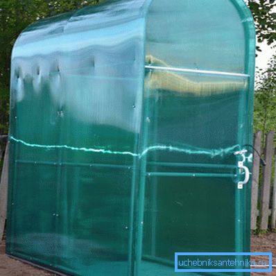 Вярвайте или не, една малка пералня не е достатъчна, за да се осигури основен комфорт, по-добре е веднага да се построи душ за страната с поликарбонатна стая. Минималният размер на самата кабина трябва да бъде един метър на метър. Съблекалнята може да бъде направена малко по-малка, около 1 м на 60 см.