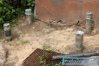 За по-голям капиталов вариант ще е необходима пълна конкретна основа. В допълнение към стълбове за бетониране подпори, ще трябва да изберете почвата под кабината на дълбочина от около 150 мм и да направи кофраж, излейте бетонова вана. Предварително инсталирана пластмасова дренажна тръба с терминал в септичния резервоар.