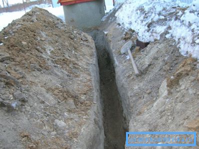 - Дълбочината на изкопа (появата на главната линия) трябва да бъде около 30 сантиметра под нивото на замръзване на почвата във вашия регион. Можете да намерите тази информация в институция за профили или да използвате търсене в мрежата. За повечето региони на централната лента дълбочината не надвишава 1,5-2 метра;