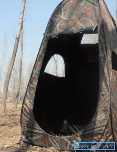 Производителите мислеха и предложиха сгъваема версия на кабината, която прилича на палатка. Структурно те са толкова прости, че могат да бъдат направени с известно упорство от собствените им ръце, след което можете да си направите душ, дори и на полето или на претъпкан къмпинг.