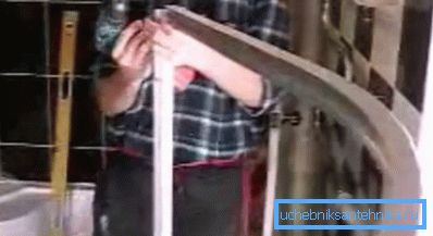 После того, как вы приставите поддон, вам нужно будет отметить направляющие, но это лучше всего делать относительно нижней дуги каркаса перегородки - просто положите её на поддон и по ней поднимите вертикальные стояки, как это показано на фото вверху.